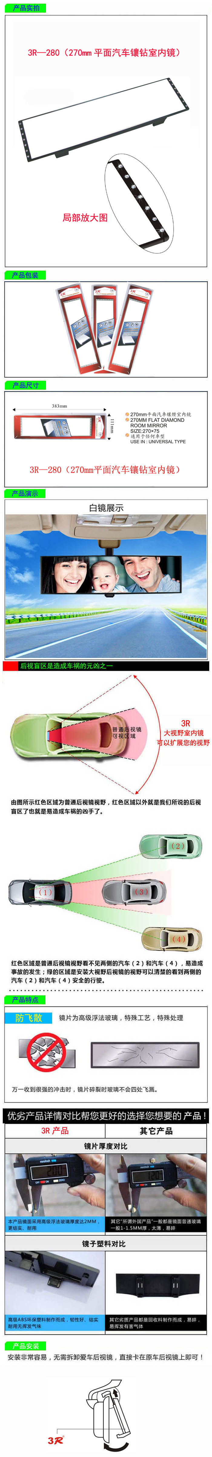 • 型號(hào):   3R—280(270mm平面汽車鑲鉆室內(nèi)鏡)