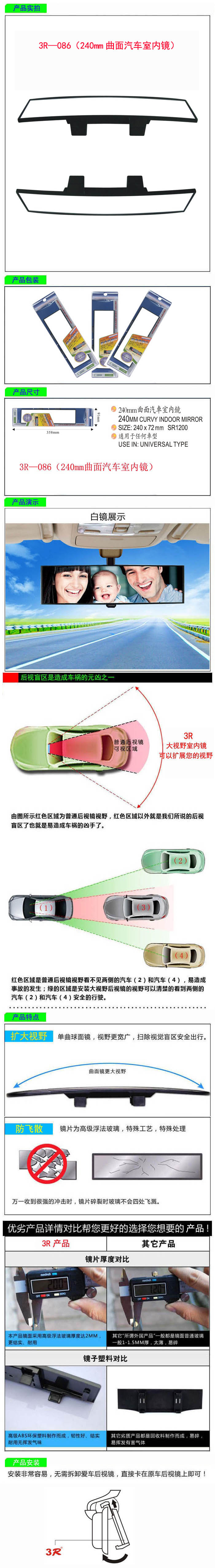 • 型號(hào):   3R—086(240mm曲面汽車室內(nèi)鏡)