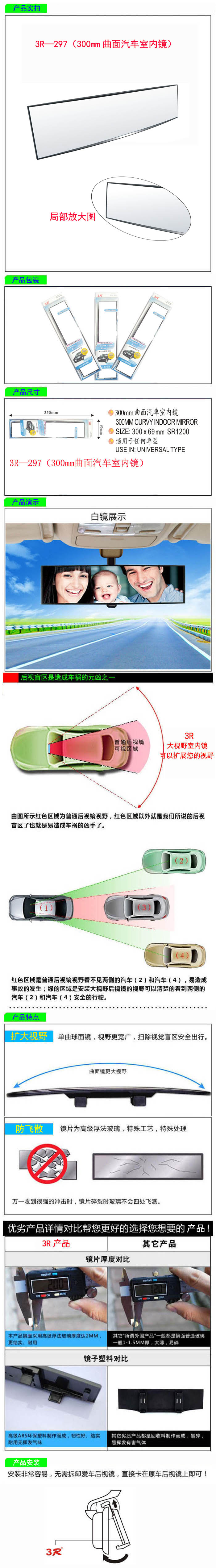 • 型號(hào):   3R—297(300mm曲面汽車室內(nèi)鏡)